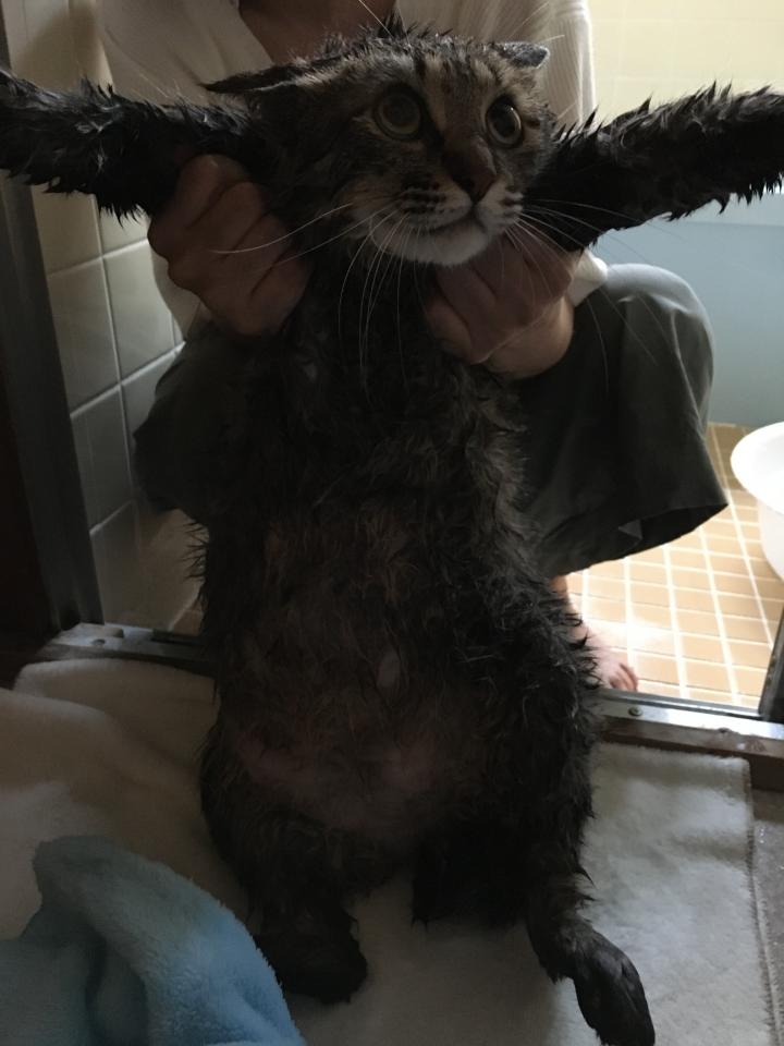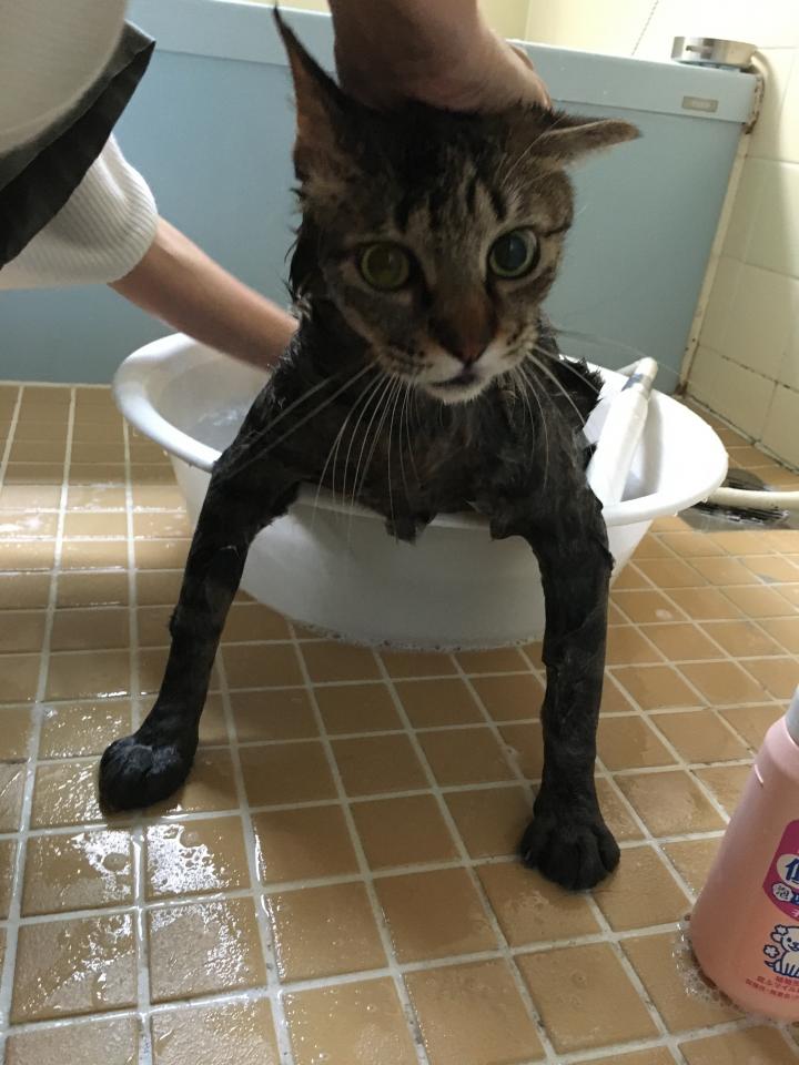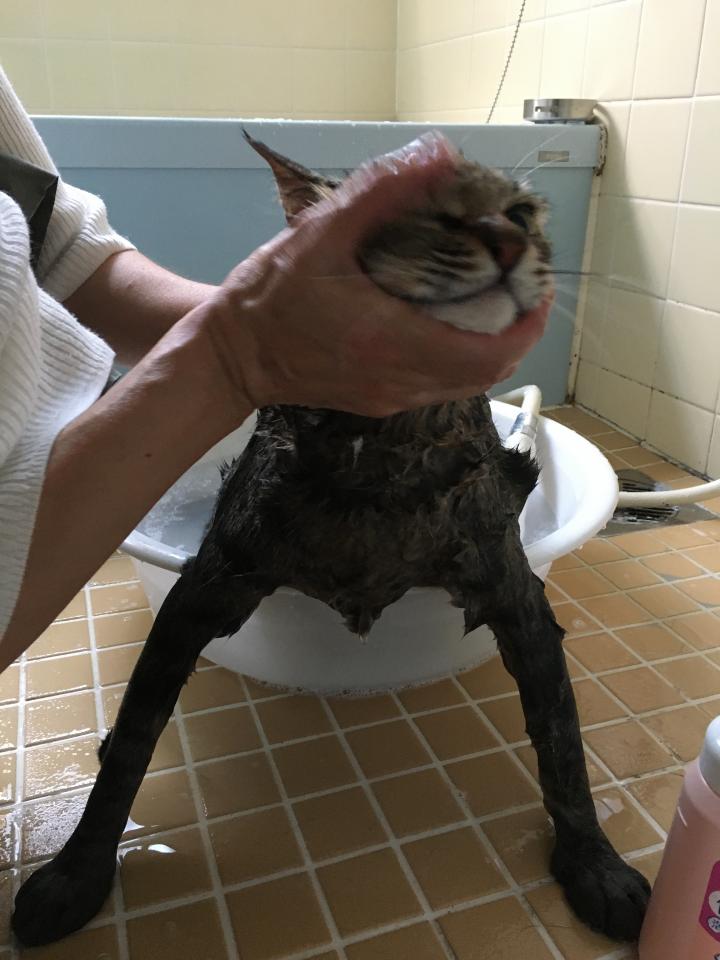 ミルクは保護して数日後に主人がシャンプーをしてくれた事はあったけど、ゲンはうちではシャンプーした事なくて😓