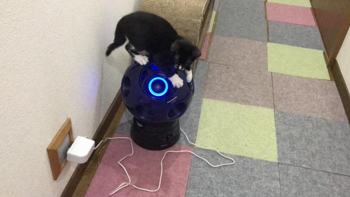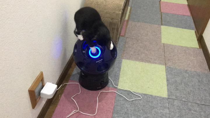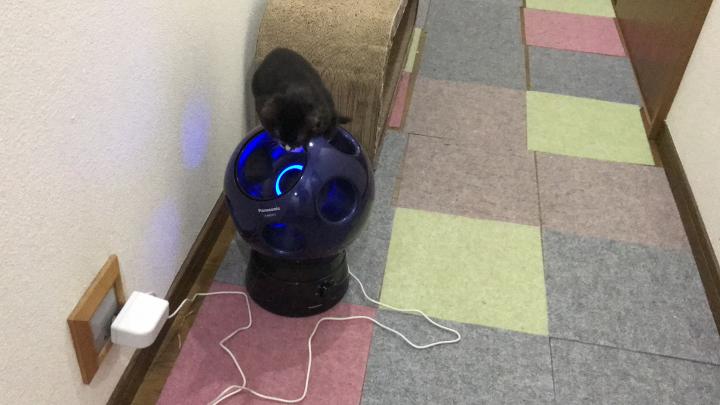 ファンの無い、回転するサーキュレーターを廊下に置いてみたら、