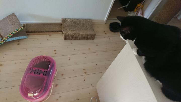 高虎だけ連れていこうとしたら、鍵を閉めていたら玄関体当たり坊主。体当たりしないでくださいよ。