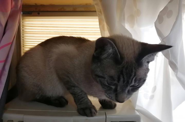 寝てるそばにいくと なー😿 と来ないで鳴きされますが・・・