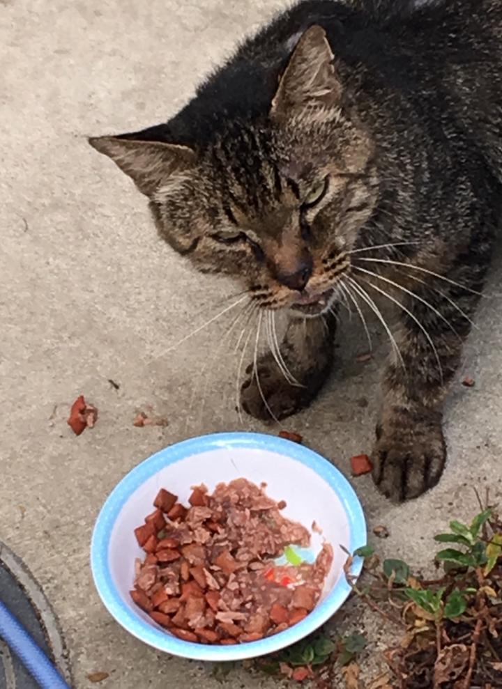 威嚇するのに空腹でご飯をほしがる猫でした。