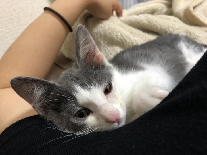 甘えん坊なグレー。この暑いのに腕枕っ子です💕