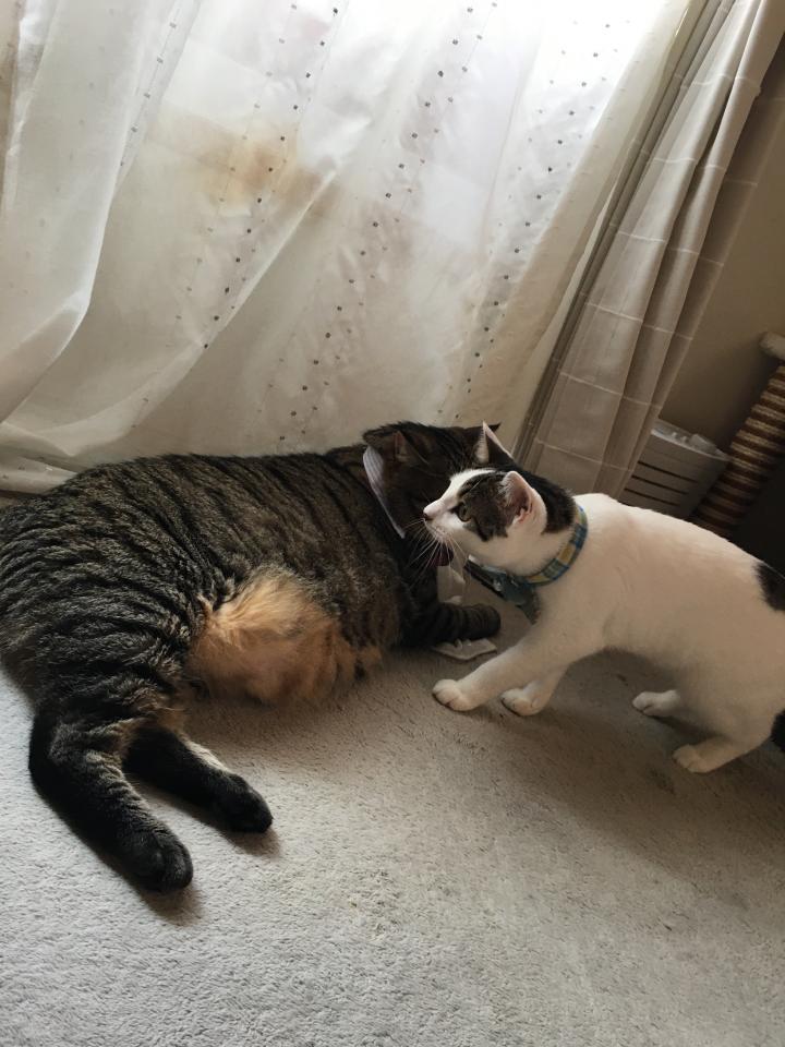ミルクももう成猫なのに小さめ+ゲンが大きいのWパンチで未だ子猫みたいに見える🤣
