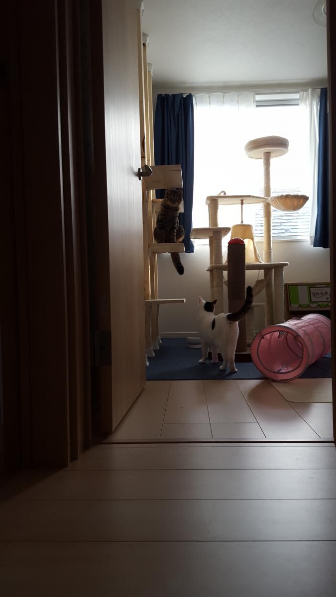 猫部屋は3階にあって、今の時季は室温がとても暑いので、なかなか登ってくれませんが、時々登ってくれてるので良かったです🙌