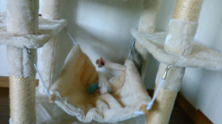 ハンモックで優雅に、時にはだらしなく寝てくれるのを夢見たはずなのに・・・