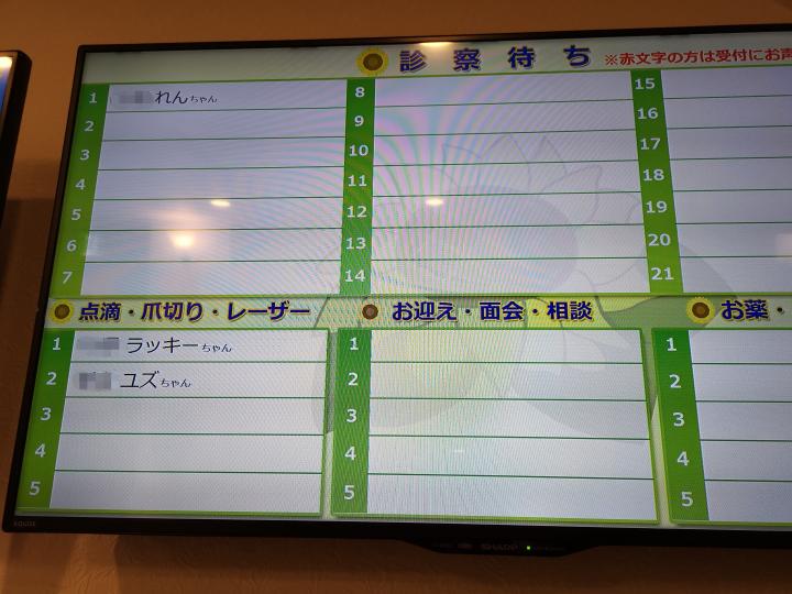 れん君は待合室まではにゃーおにゃーお声を出してたけど、診察になって、看護師さんが軽く保定してくださり、私もそばで顔を見ていると、大人しくじっとしてた。