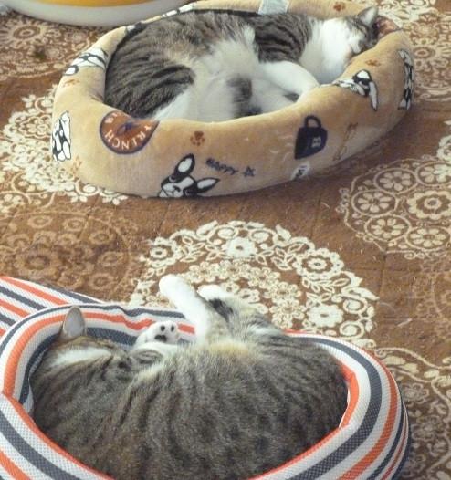 いざ、猫達と遊ぼうとするも、起きません。タイミングが悪かったなぁ~と思うも