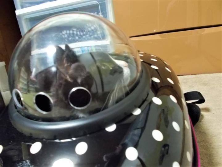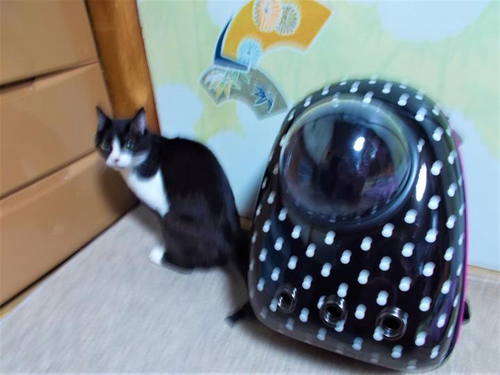 一匹を背中に、もう一匹を両手で抱えるようにキャリーバッグを持てば、
