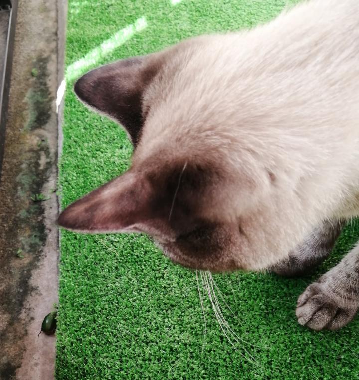 最近はちょっとだけハーネスで玄関から2mくらいをお散歩させているのですが