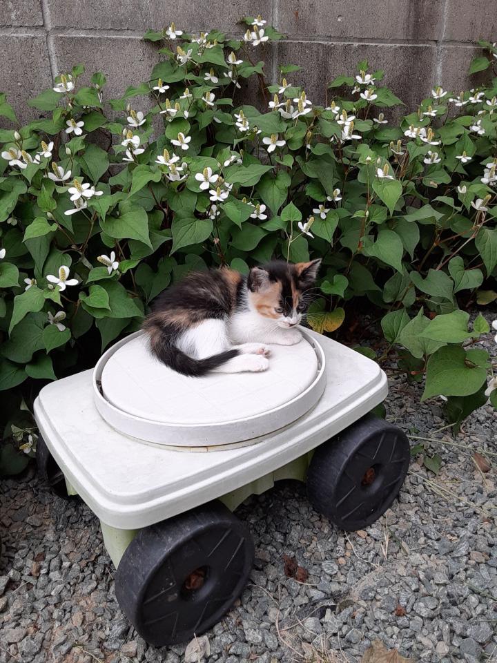 ウッドデッキにいる頃は他の子がごはん食べたり、遊んでいてもひとりポツンと眠りこけるようなマイペースな子でした。