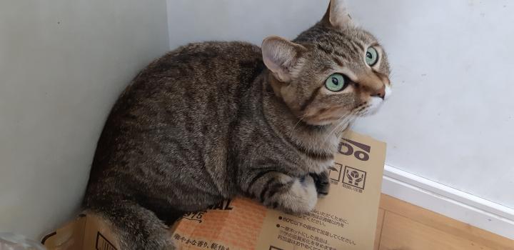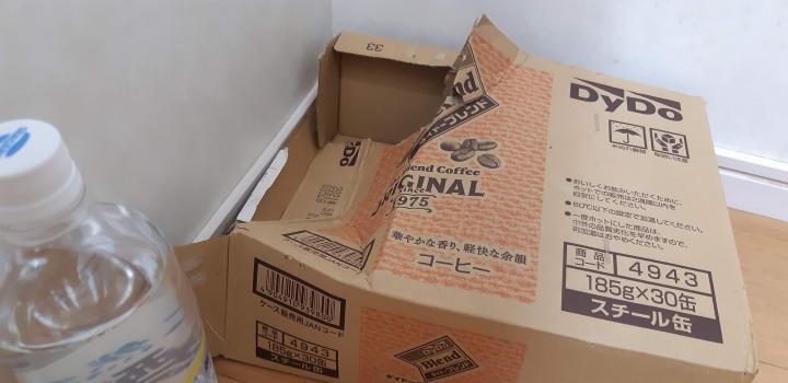 ポンちゃんが一生懸命掘った缶コーヒーの箱に入り込んで寛いでます😧