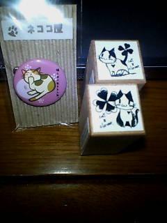 それは『ネココ屋』さんで購入したスタンプとバッジ。
