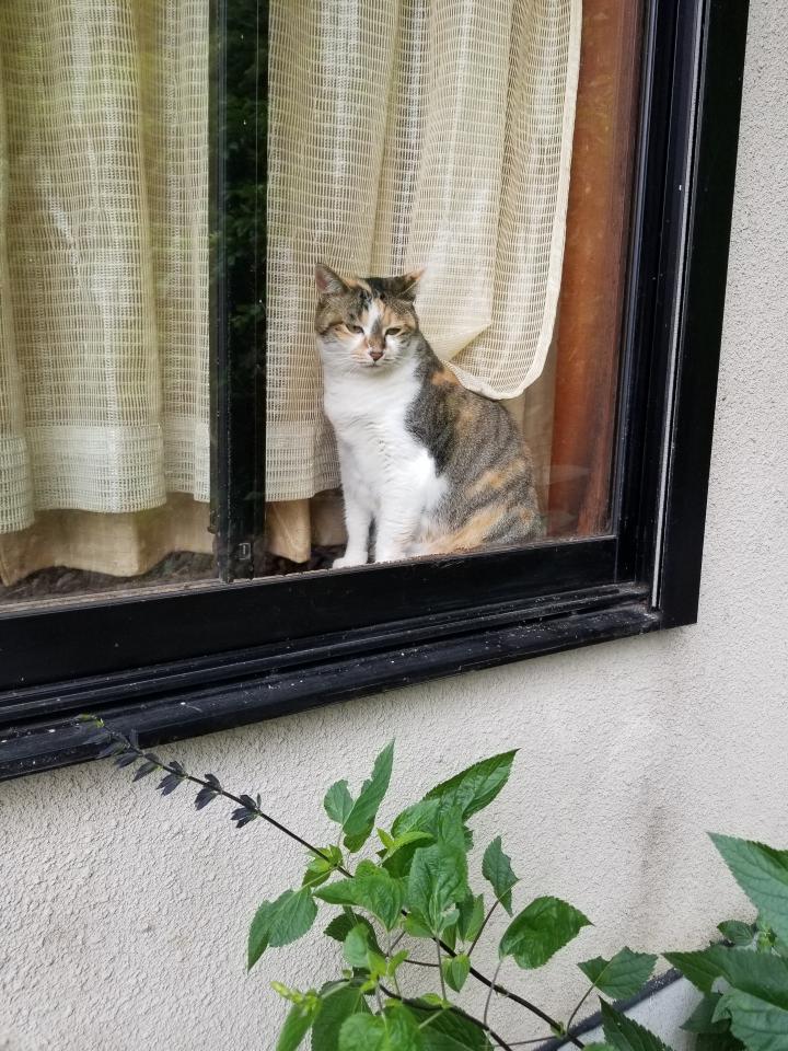 ゆずは窓辺でお友達のカラスを見ながらクラッキングしてます🐱