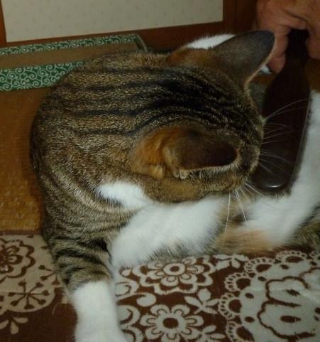 仕方なく隣の和室でハナにブラッシングをしてやることに