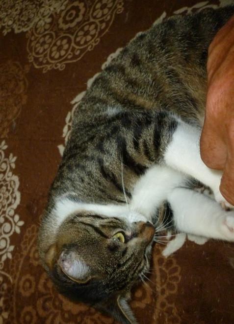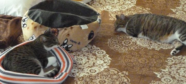 こちらが、おとなしくパソコンを見ていると、ハナが構って欲しいのか、鳴きの催促を