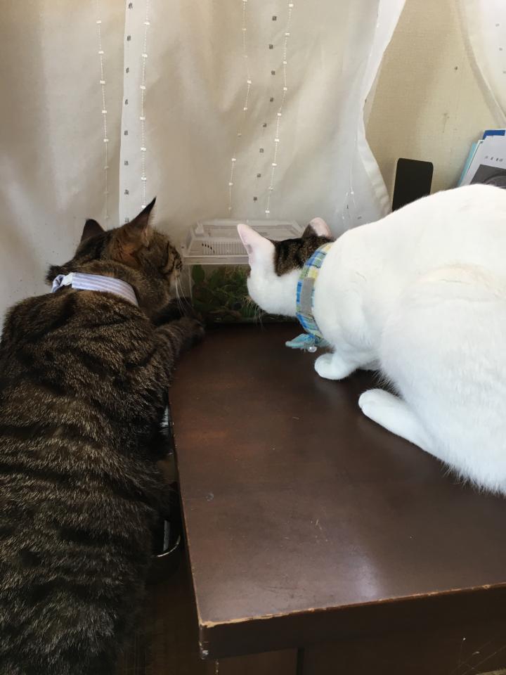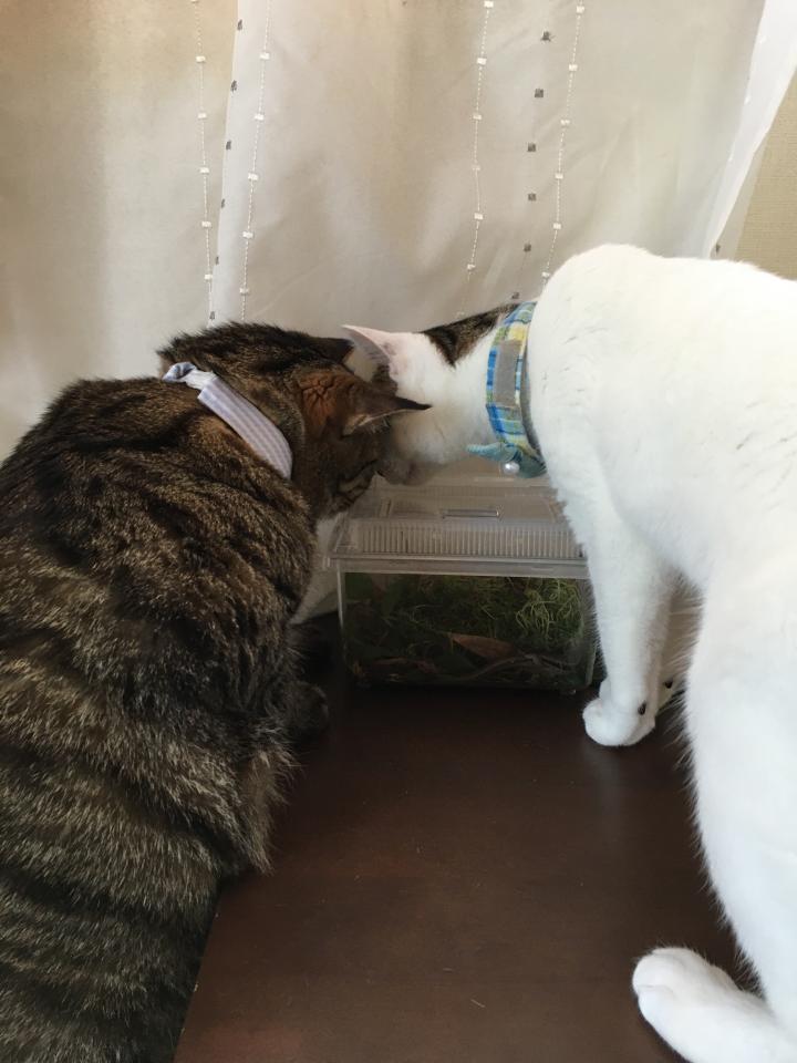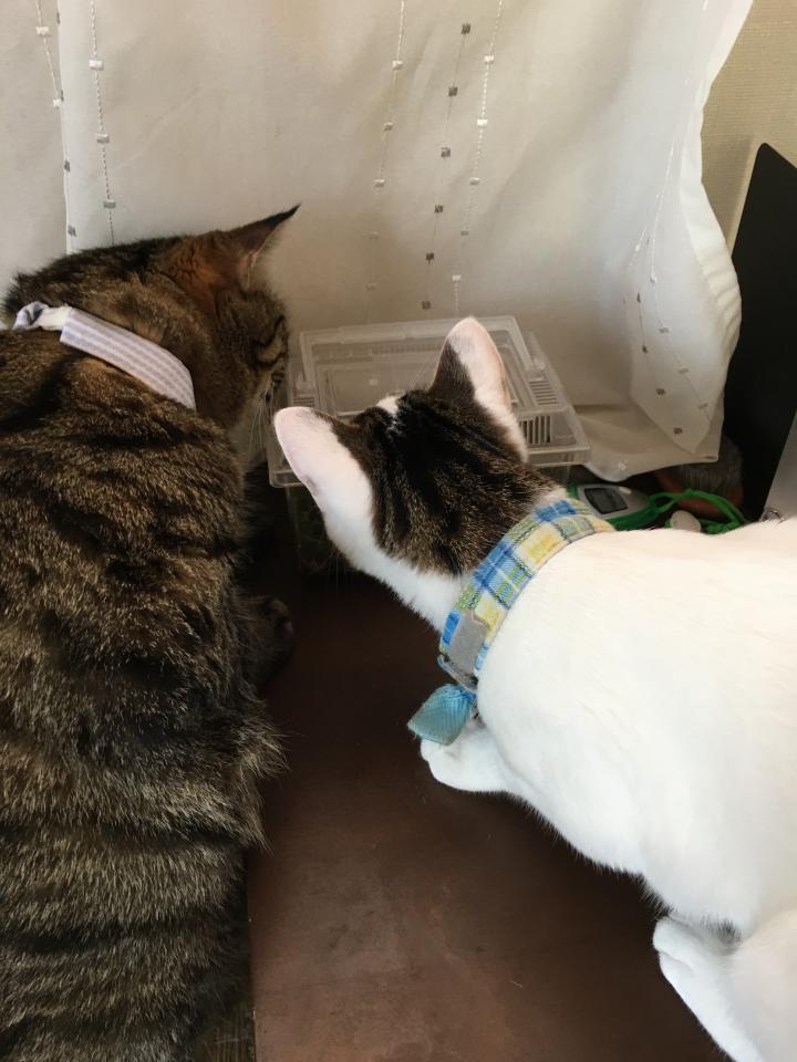 と私がイライラしてるのに反してゲンとミルクは興味津々に見慣れない物をチェック😅
