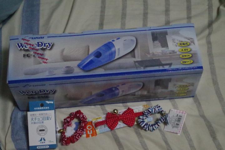 今日は,目薬とハンディクリーナーと首輪を購入.