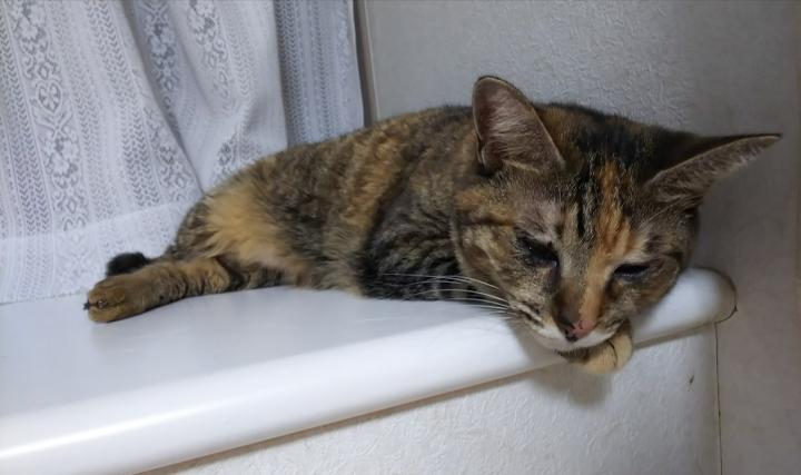 姫ちゃんは、涙?めやに?がよく出ます。猫風邪の名残で。