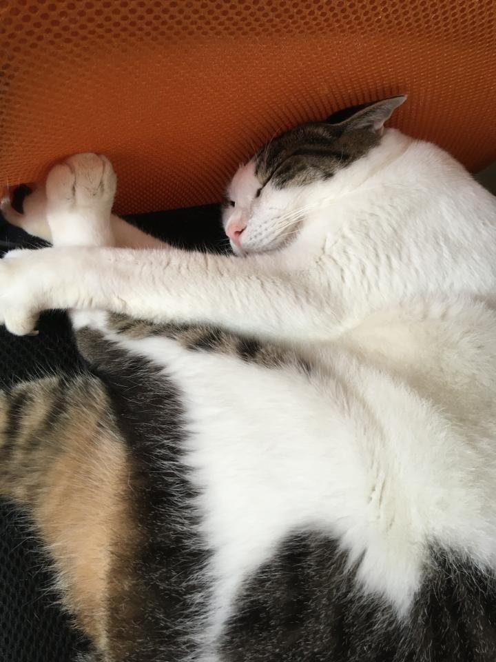 ポポちゃんがうちに来てから、お気に入りの椅子があります。私がデスクワーク用に買った安い椅子ですが、座り心地が良いらしく、よく椅子の上で寝ています😆