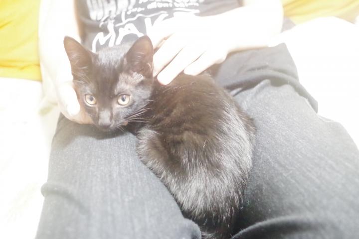 くろまめくん大好きなお母さんの膝の上. ん?カメラの調子がおかしい?