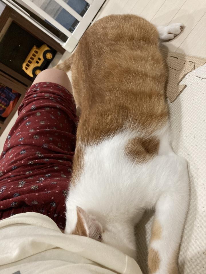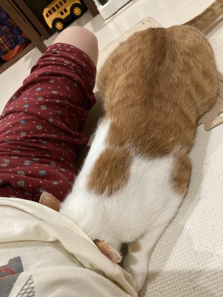ゴロゴロしてる飼い主のそばでグイグイくるじゃん😅