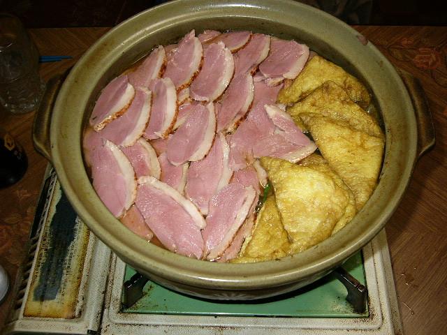 そしてニラ、油揚げ、合鴨ロースを入れて完成です。