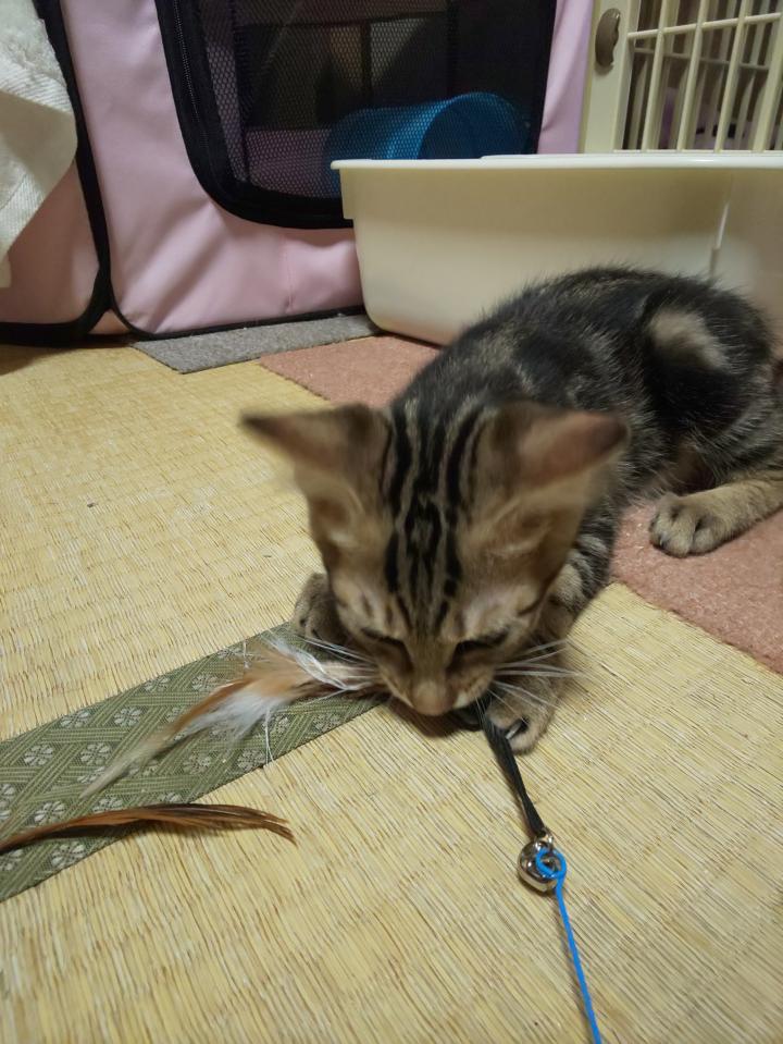 放牧中、子猫が福にゃんの腎不全のカリカリをつまみ食いしていきます