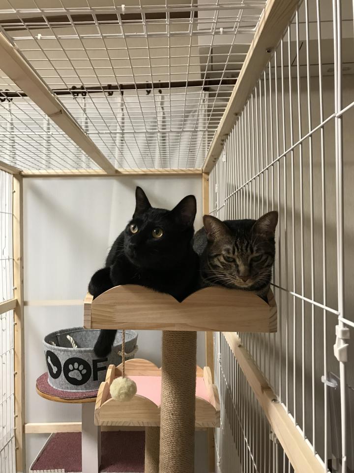 手狭だった猫小屋が一気に広くなってしまい、どこにいたらいいのか落ち着きませんでした。