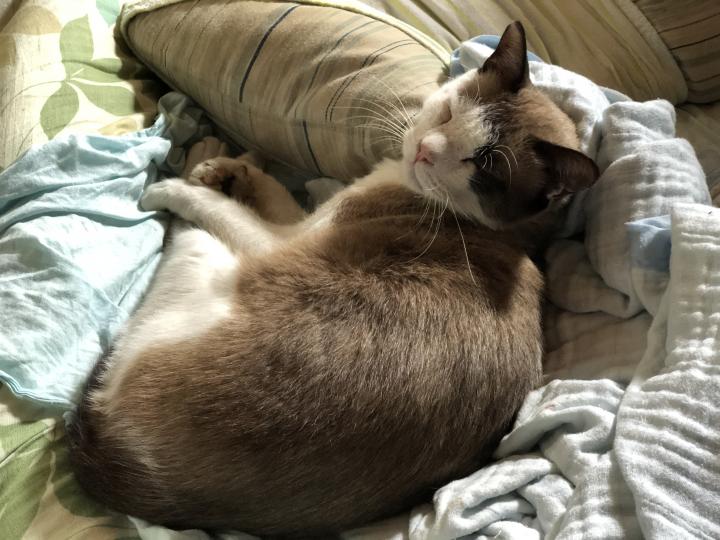 ところが、昨夜遅く、日付も変わって8月31日0時45分、白が社会人3の部屋でお休みになられました。