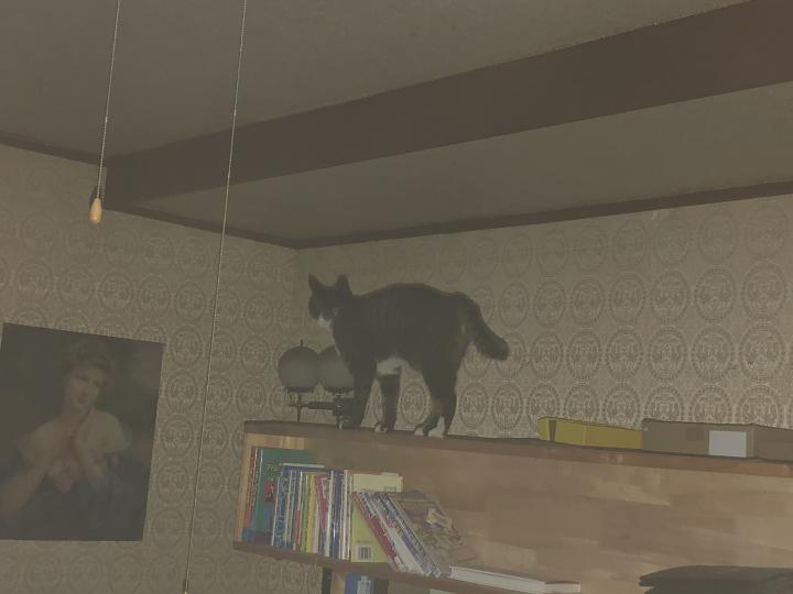 そのままトラは奥の部屋の棚の上に身を隠しました。