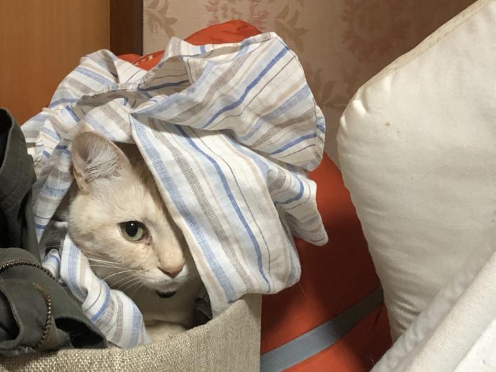 なぜか脱いだシャツの中に潜ってすごす。