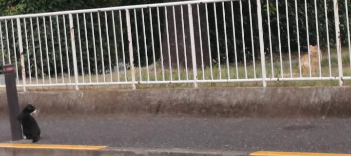 いつも見かける茶色の長毛ちゃんとハチ割れちゃんがいました