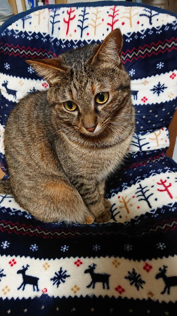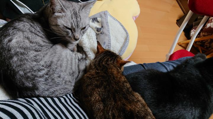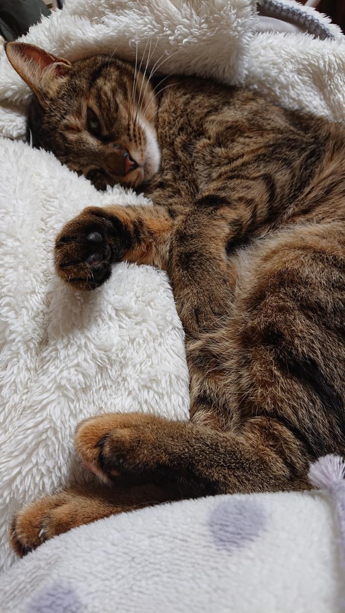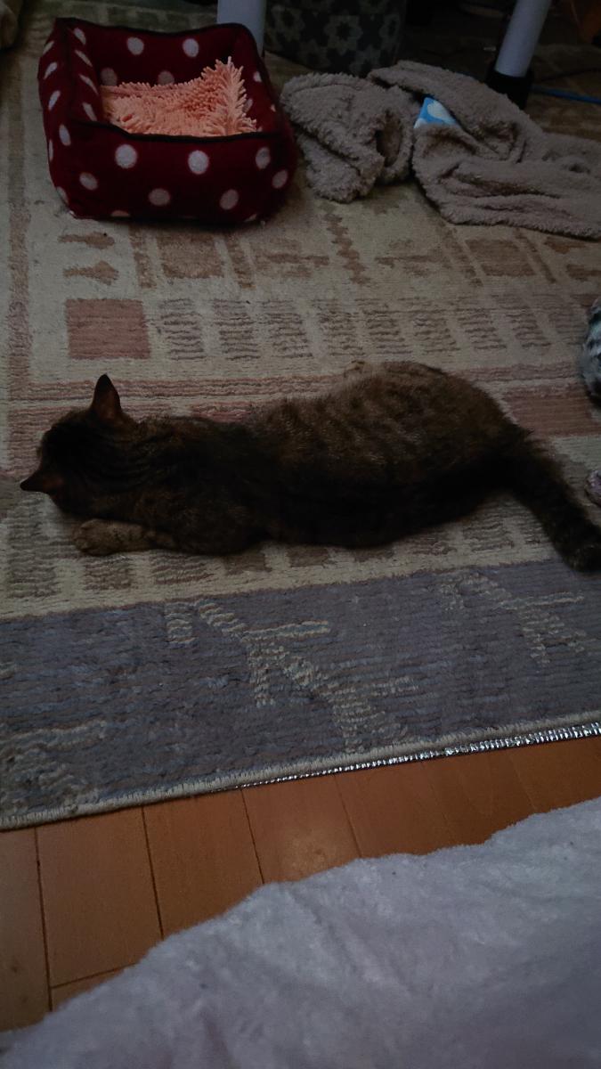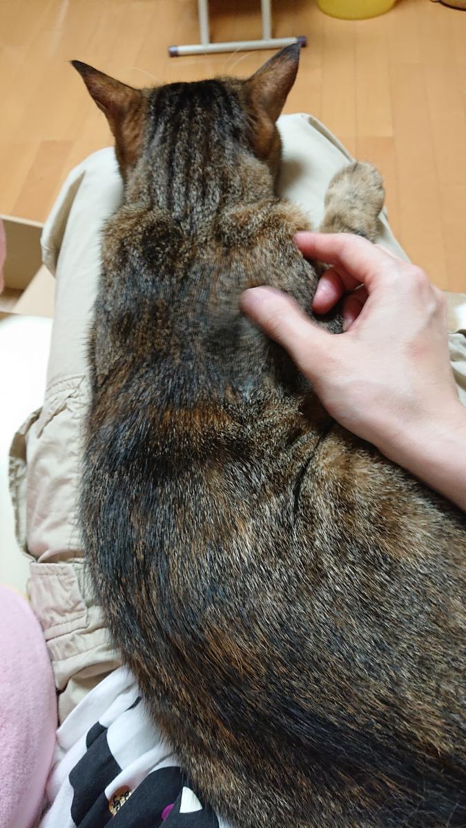 ご飯のあと、私の膝に乗ってフニャフニャ言うりんちゃん。いつもこのポーズ☆