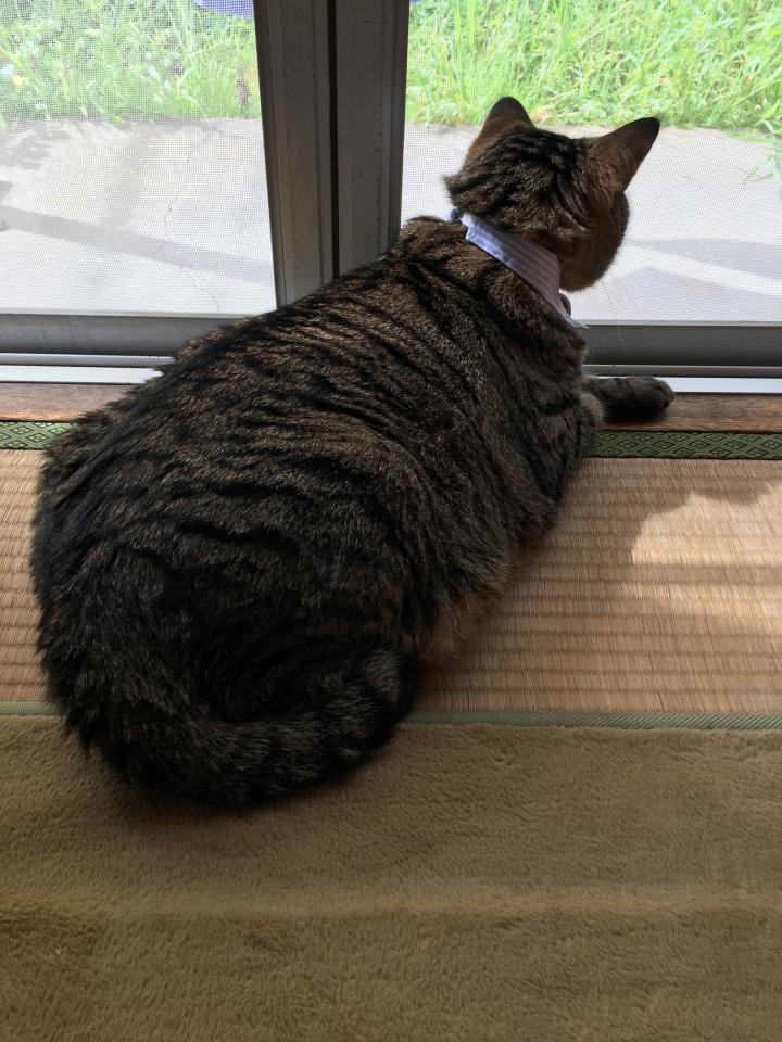 庭を歩いてるトカゲを見つけ狙うゲン😓