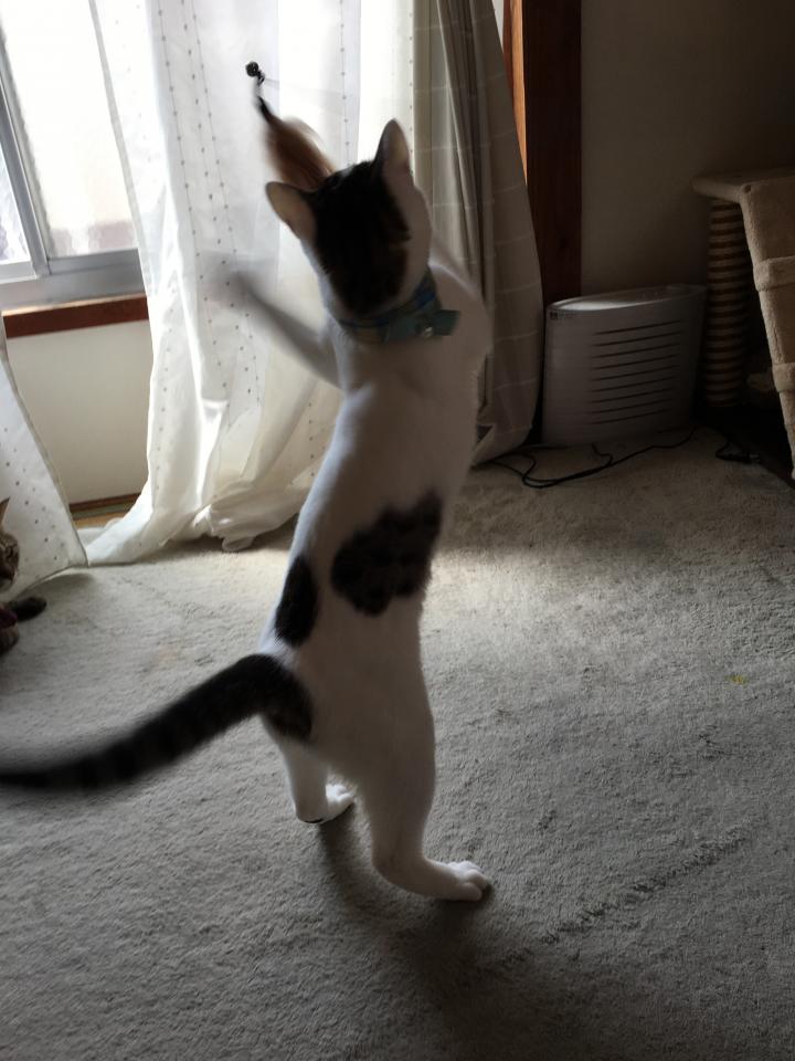 ミルクさん、一生懸命オモチャを捕まえようとしてましたか🤣