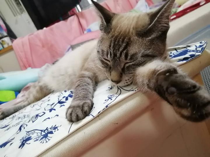 今日は朝早くからベランダにゃるそっくしていたから・・・