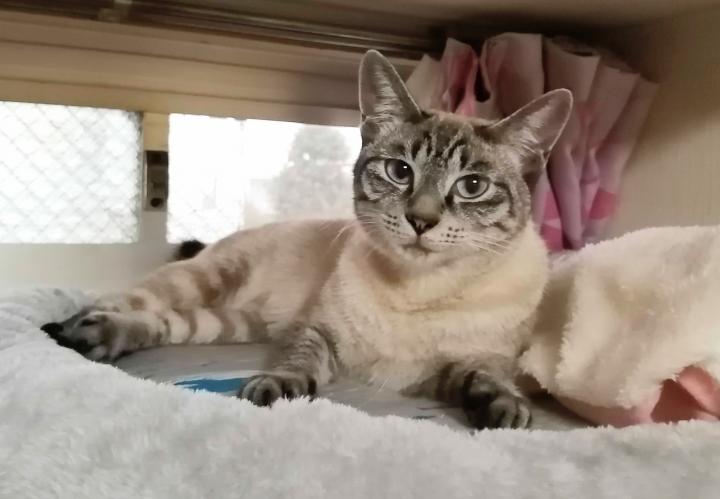 突然雷と大雨だったので、キャットタワーで様子見をしていたようです。