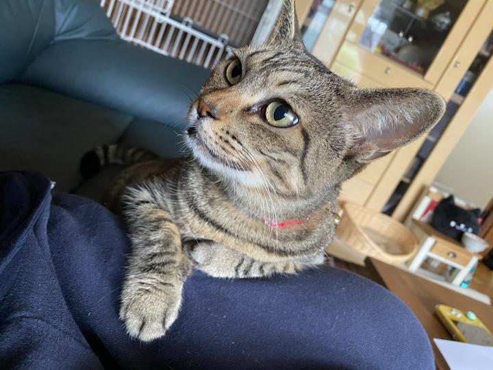 私のスエットにお手手を置いて、目はあずきを見てる?笑