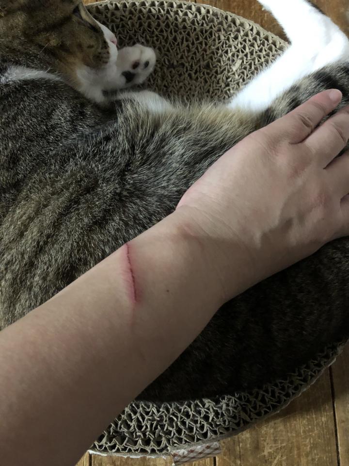 ちょっと派手に引っかかれたので恥ずかしかったです。