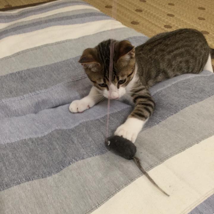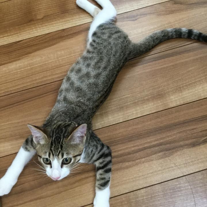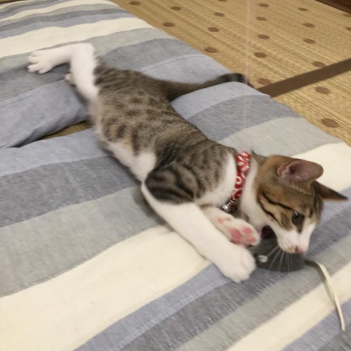 遊びすぎて暑くなったら床でクールダウンです。