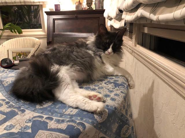 夜は主人とワンコには二階に行ってもらって、ニャンコが好きなだけ外を眺められるようにしてます。結構甘えん坊で、私がそばにいないと探しまわるので、近くにいるようにしてます。