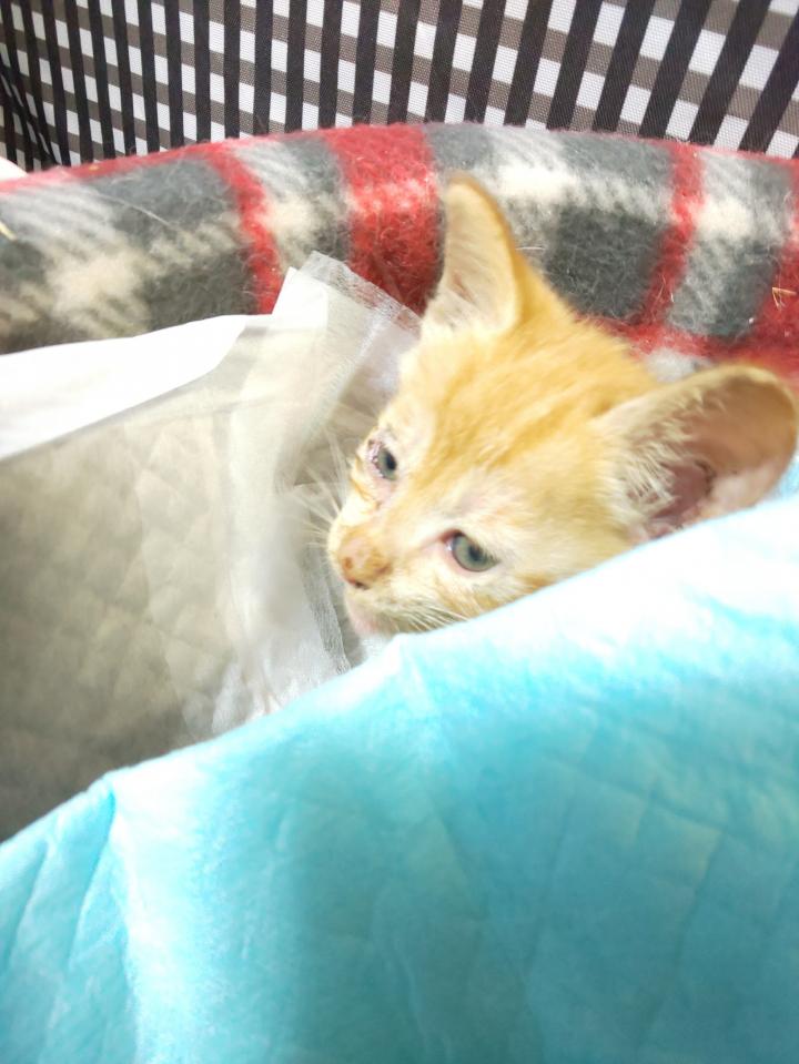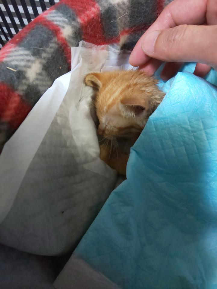 夜、青い目の野良猫ちゃんの下腹部にくっついてたから