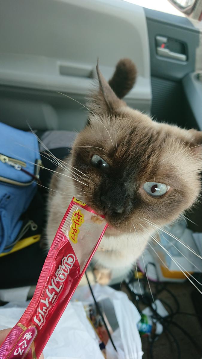 車内で水分補給という名のちゅーる大会。