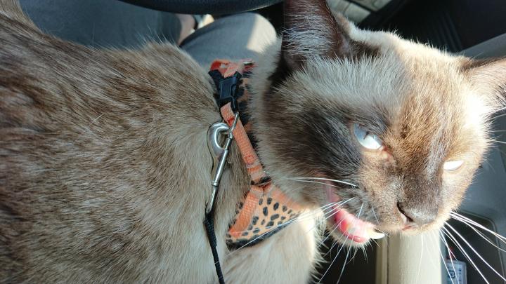 車庫入れして降りる段階で膝上に足に爪立ててもう抗議。