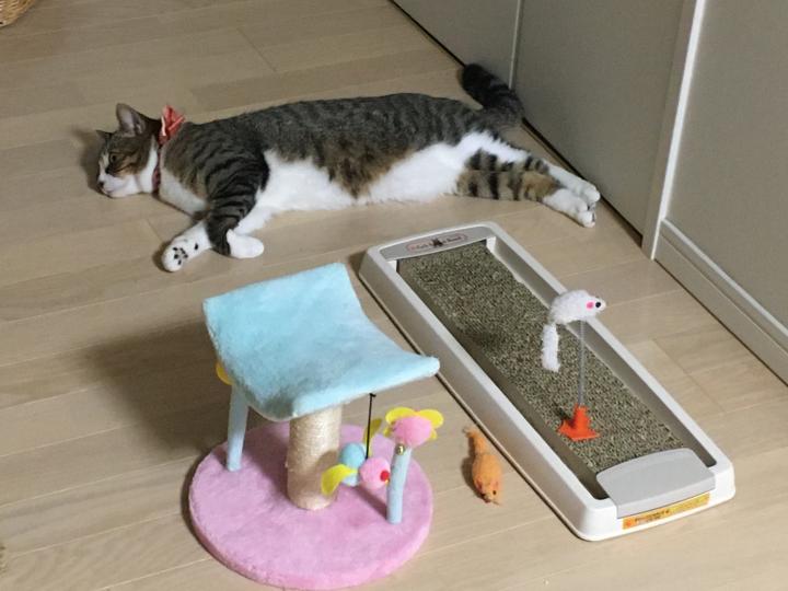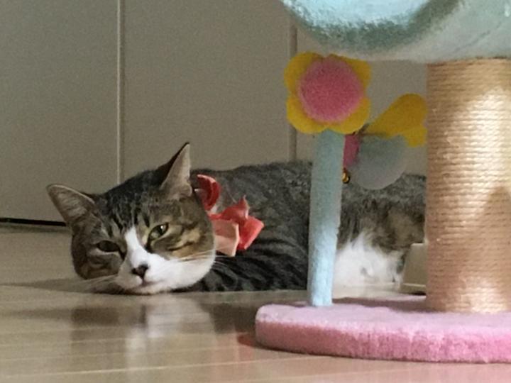 ゆずたんは暗い所で体を長ーく横たえて寝てること多し。洗面所でコレやられると踏んじゃいそうになる💦