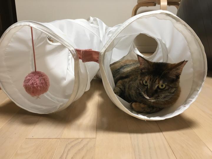 IKEAの猫トンネル。何故かまっすぐよりもU字型にしてるほうが好きみたい。