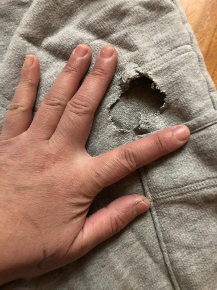 これは前に日記に書きましたが今年の2月、数年ぶりにウトウトしていた母親の着ていた服を『めめ』が食べちゃったものです。