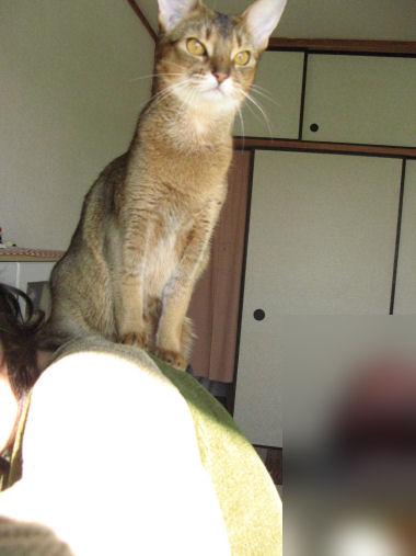 かなり無理な体勢で肩の上に乗っているみ~ちょを撮影したのですが