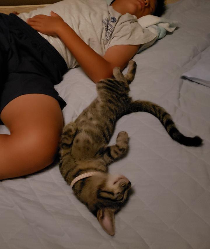 ちっちゃいときは潰しちゃいそうで寝れなかったけど、もうだいぶおっきくなったしね(^ー^)1.5㎏もこえたし☆
