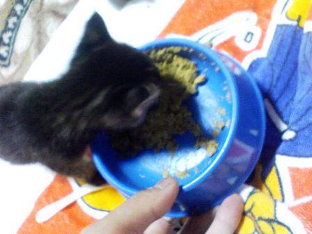缶詰から子猫用ドライフードをお湯で柔らかくしたものに変えましたが